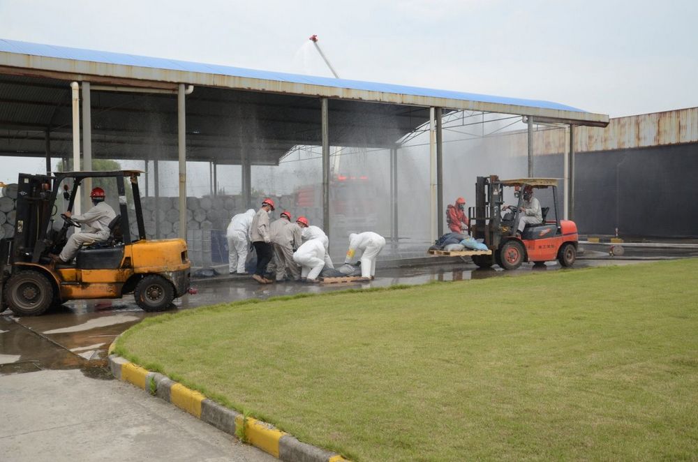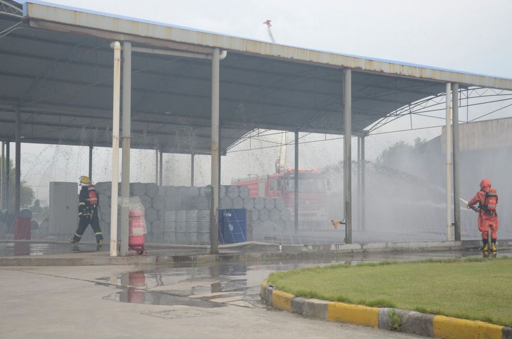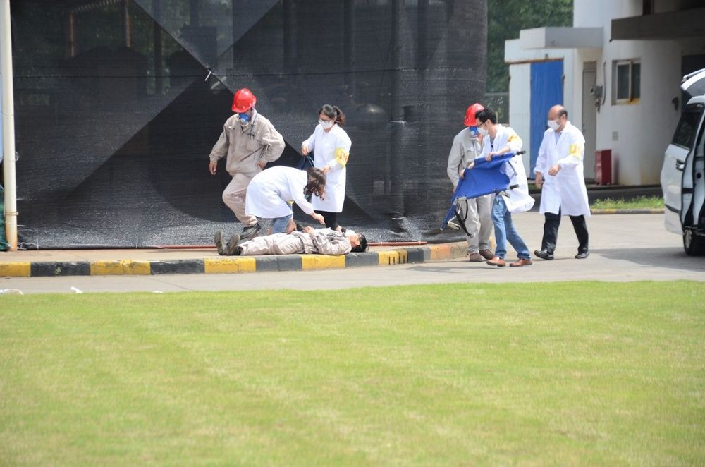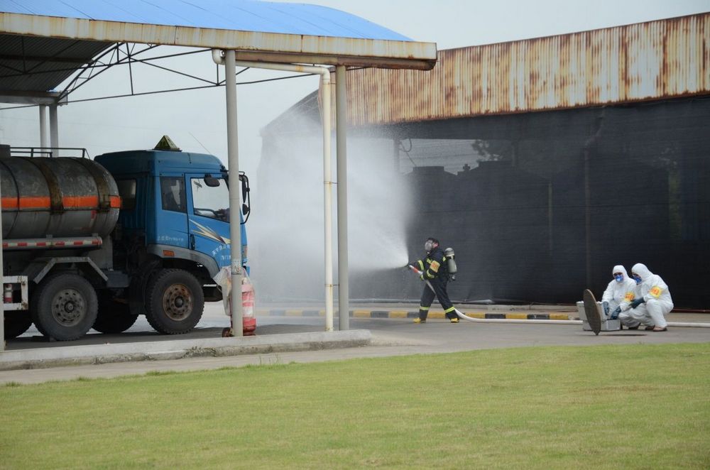 公司啟動(dòng)應(yīng)急預(yù)案后,防化搶險(xiǎn)組第一個(gè)沖到現(xiàn)場(chǎng)